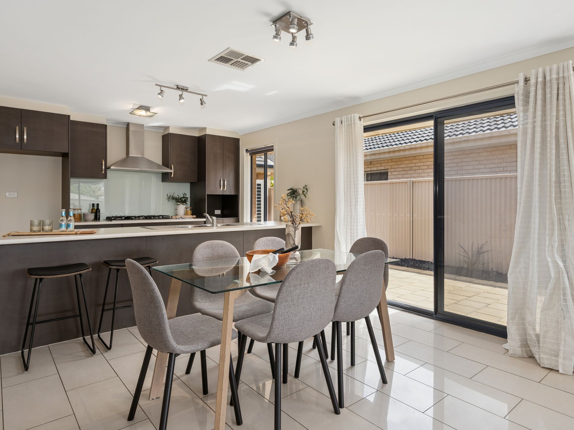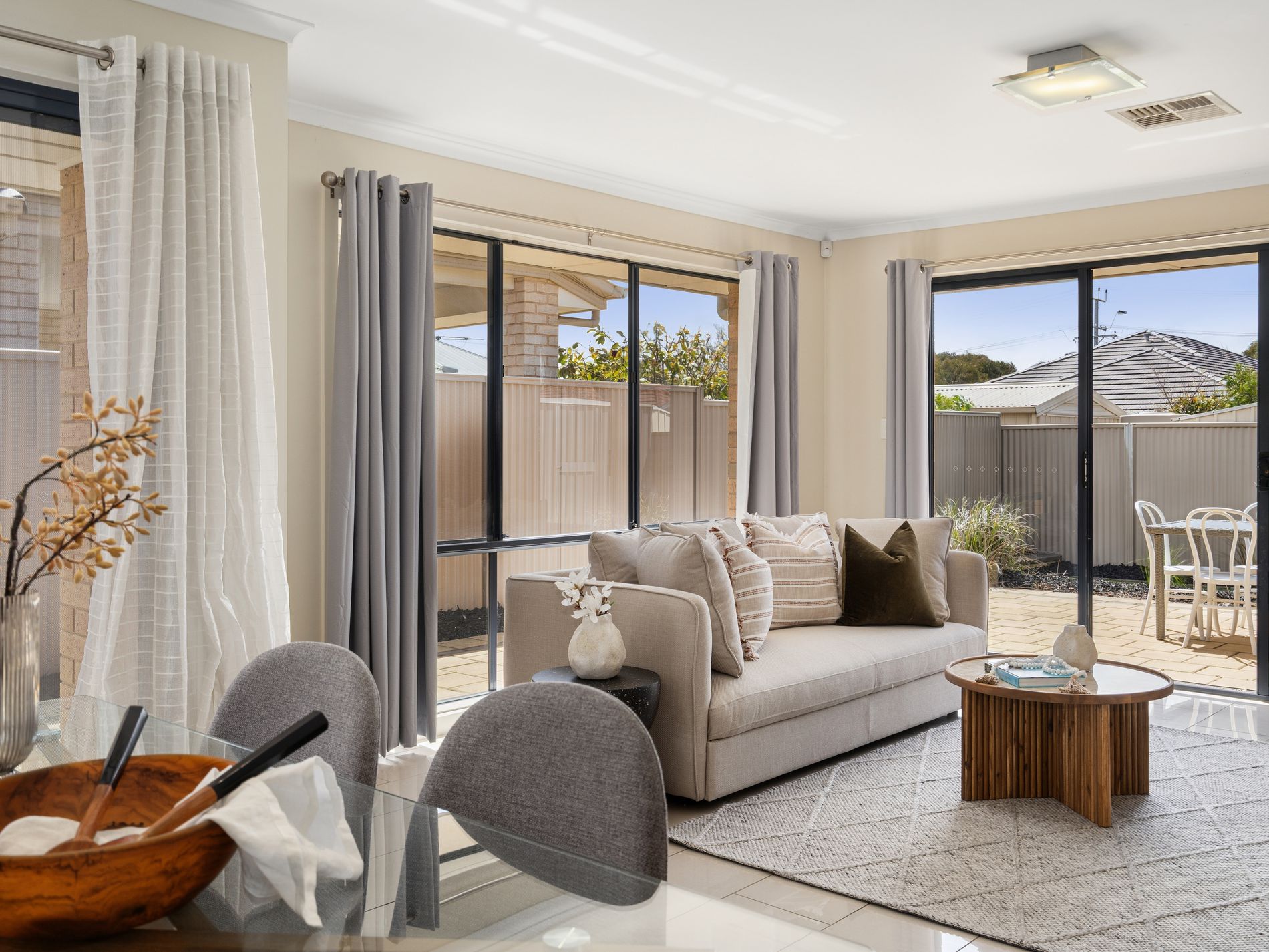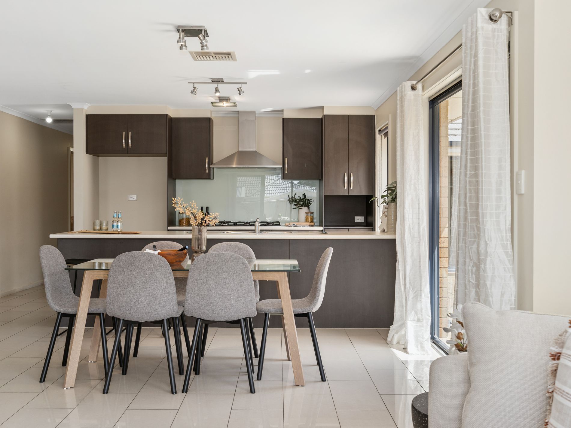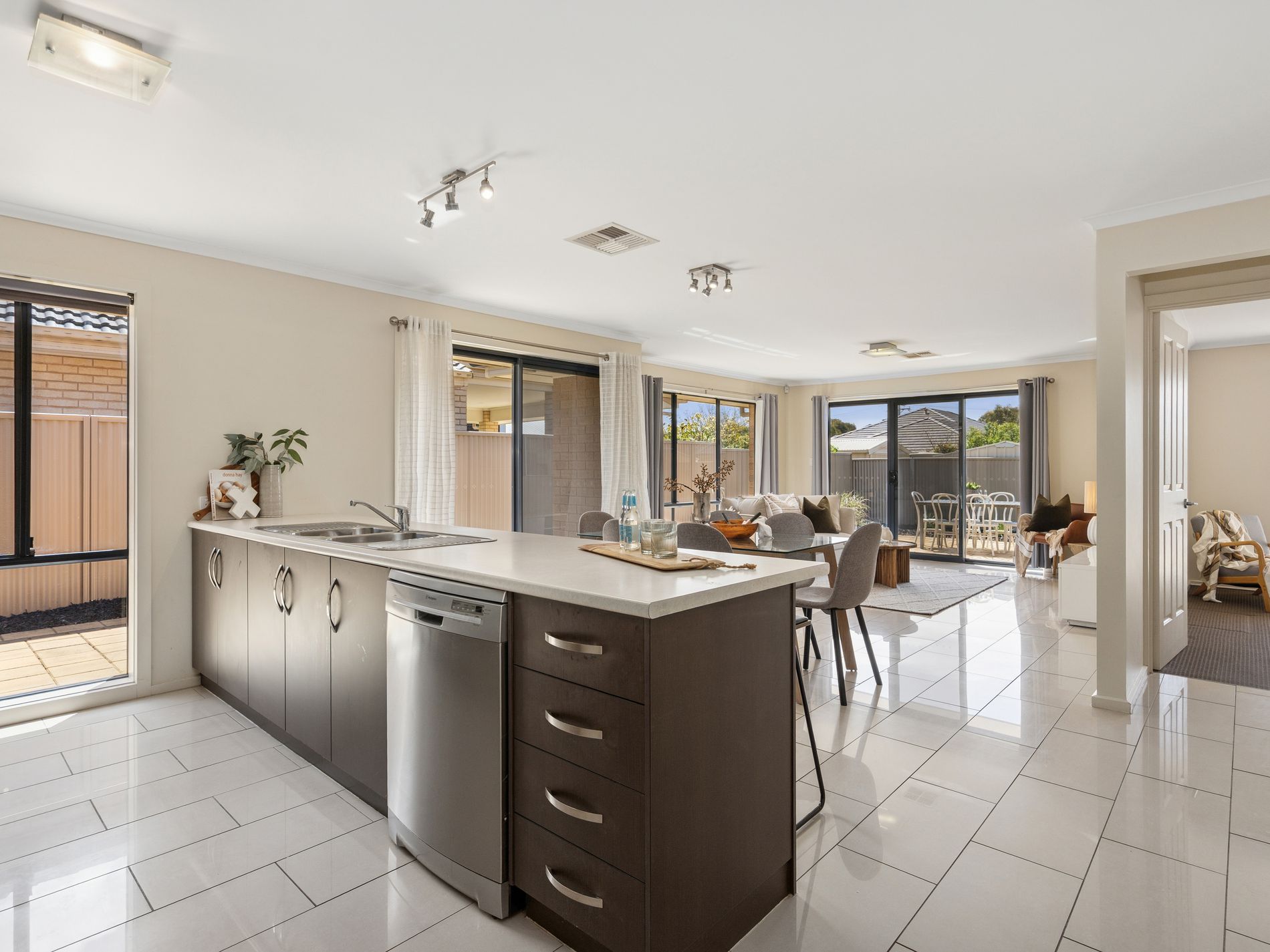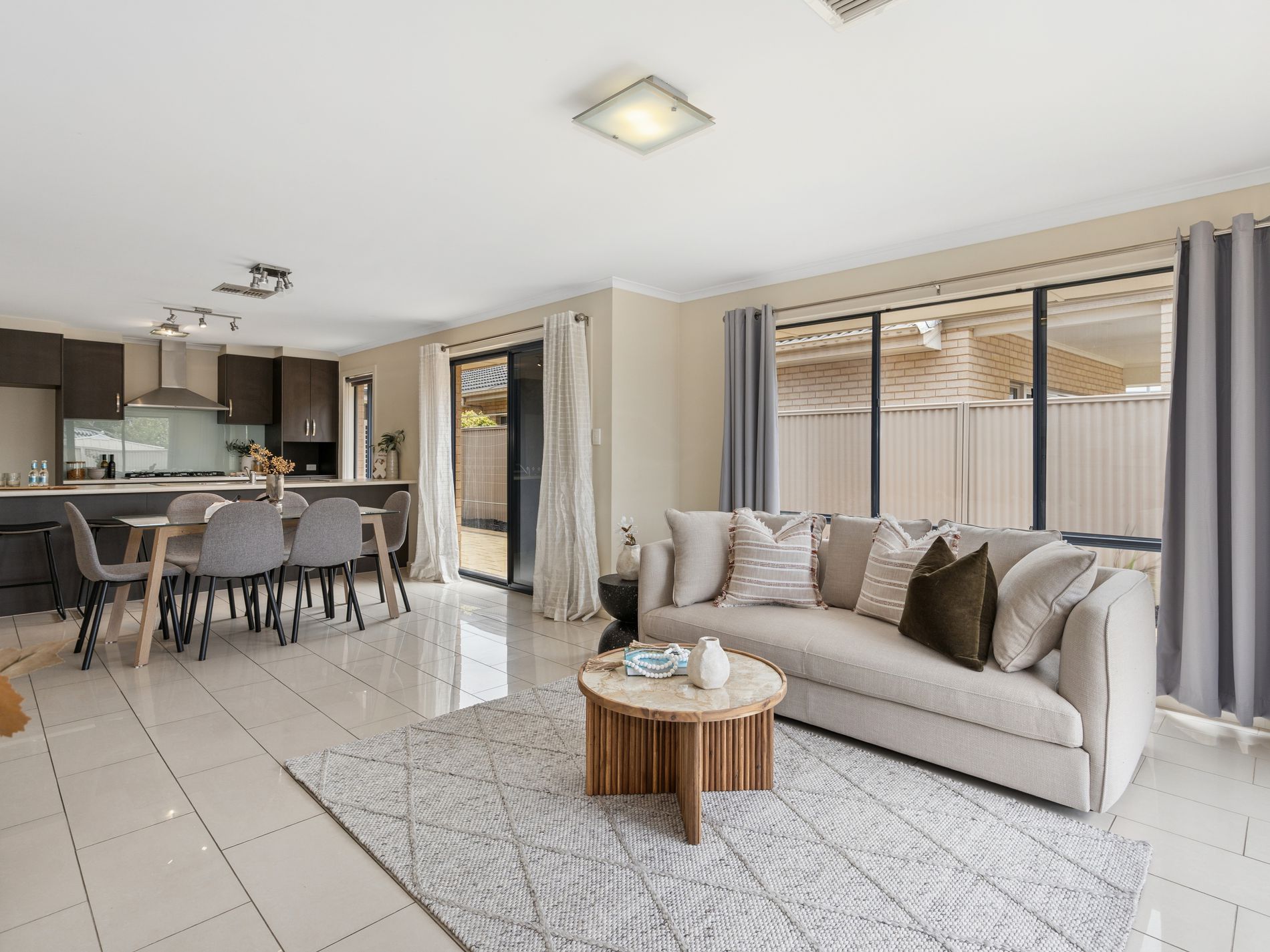 - Open-plan kitchen, dining, and living area bathed in natural light