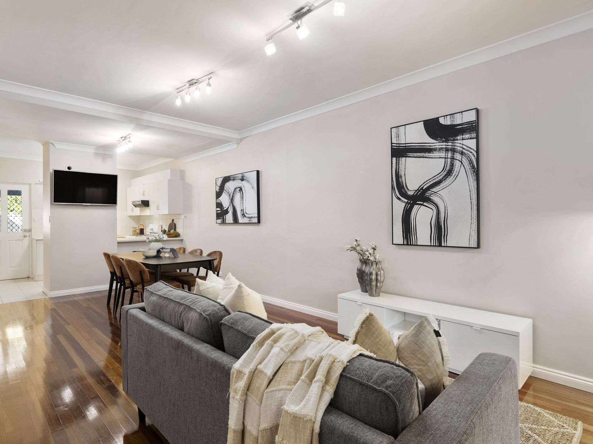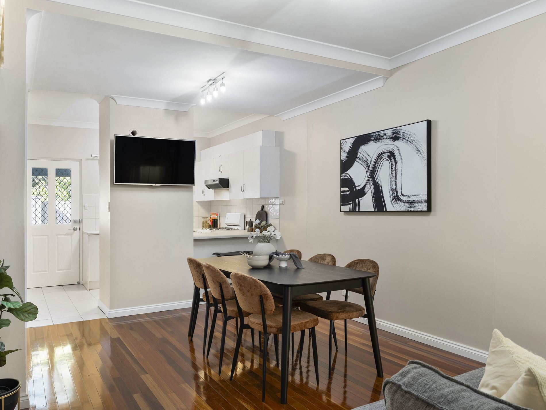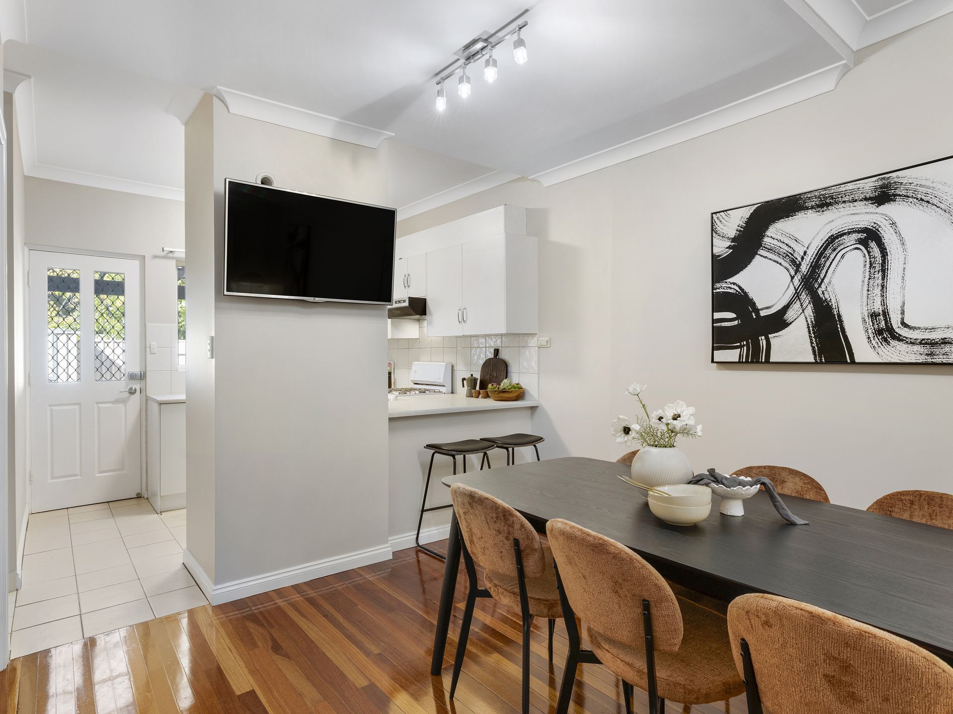 Step inside and you’re immediately met with warmth underfoot, with high-quality polished Karri timber floorboards adding richness and character across the living spaces and through the stairs and upper floors. The home feels cohesive, inviting and effortlessly liveable, a place you can simply move into and enjoy.