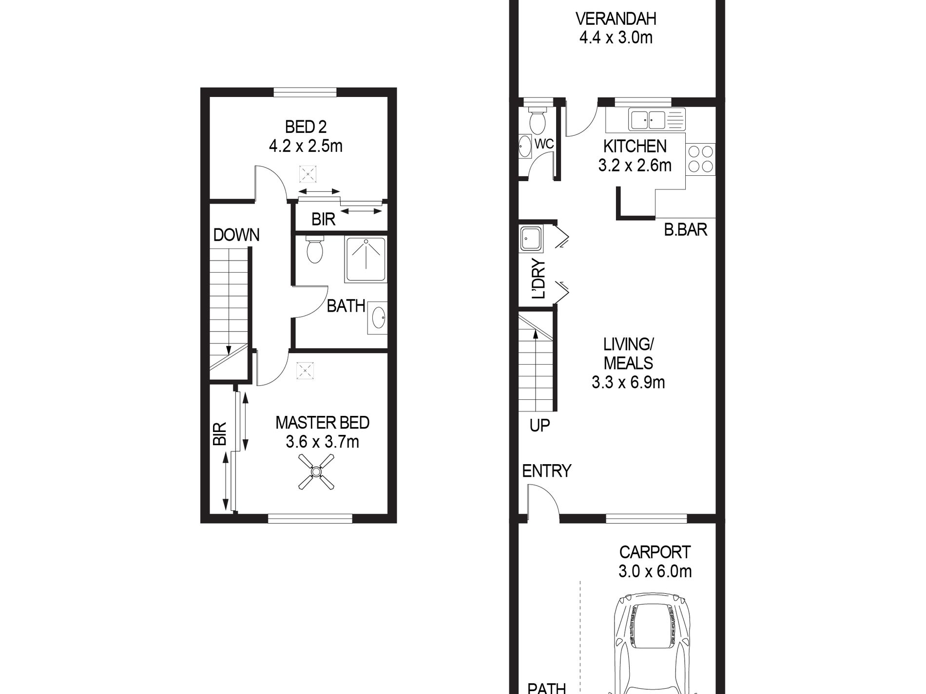 • 2 Bedroom, with Master bedroom offering floor to ceiling built in robes, individual fan, and direct access to the gorgeous brand-new dual bathroom. 2nd Bedroom also offers expansive space, with built in robes and serene outlooks.